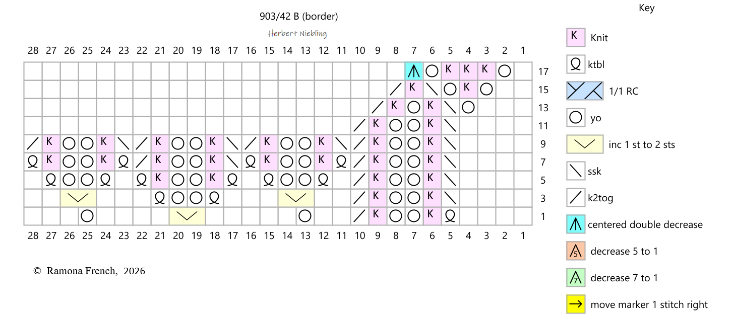 One version of this pattern comes with an extra chart for the border, consisting of 18 rounds. I have included that chart below (903/42 B).