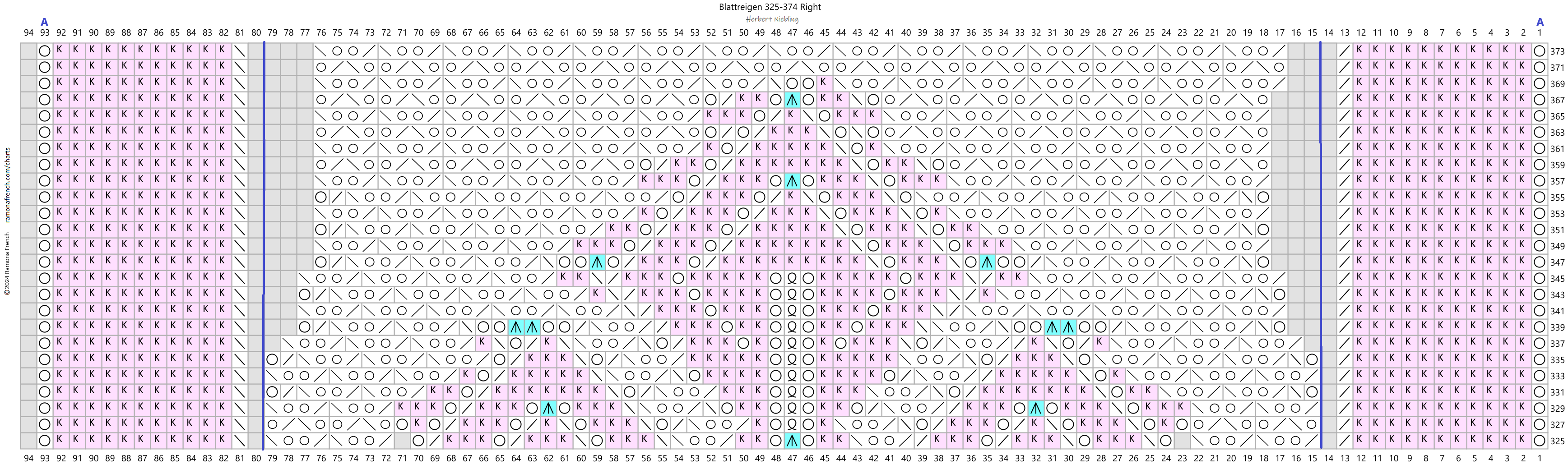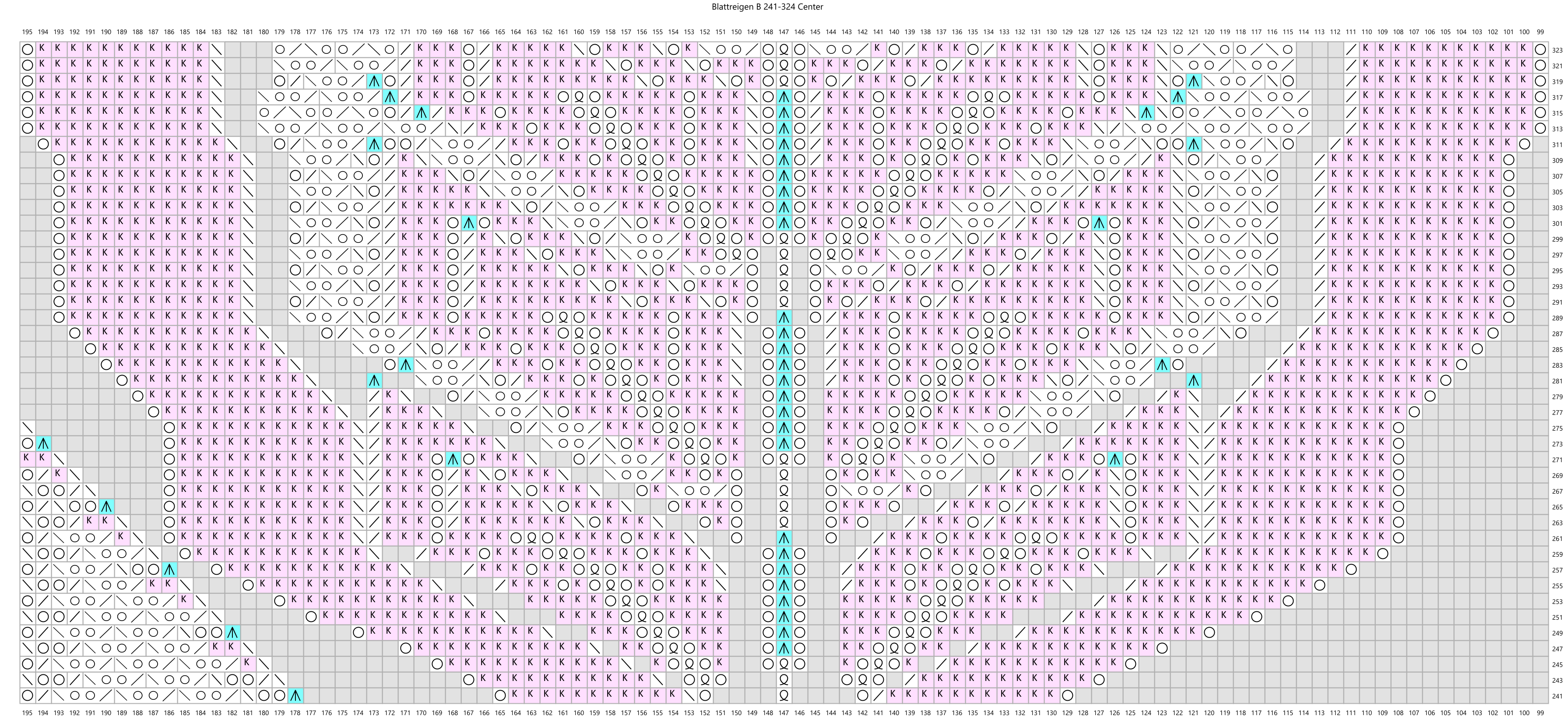 This is a huge pattern, a bedspread. It took a long time to do the charts, but I think it would take even longer to knit. I don't really want to cope with the instructions yet. Annagret wrote out the instructions with some questions, and I have included a link to her explanation/analysis. One of these days I'll work on it more, I imagine.