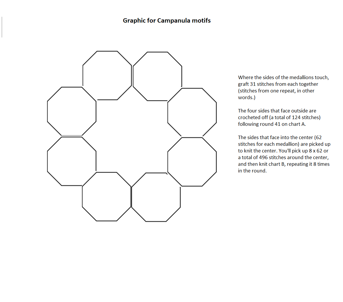 For each motif, cast on 8 stitches and join into a round. Work Chart A 8 times per round.