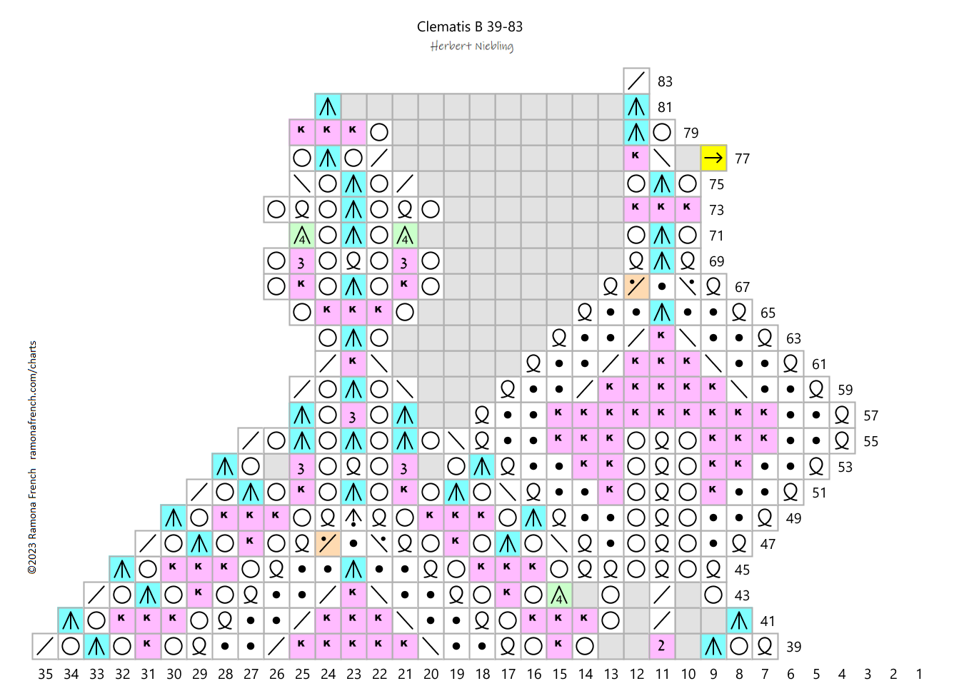 - I don't own the original pattern, but I do own my recharted version. So, please don't copy my charts and claim them as your own or publish them under your name. If you want to have your own charts, then find the original patterns and rechart them yourself!