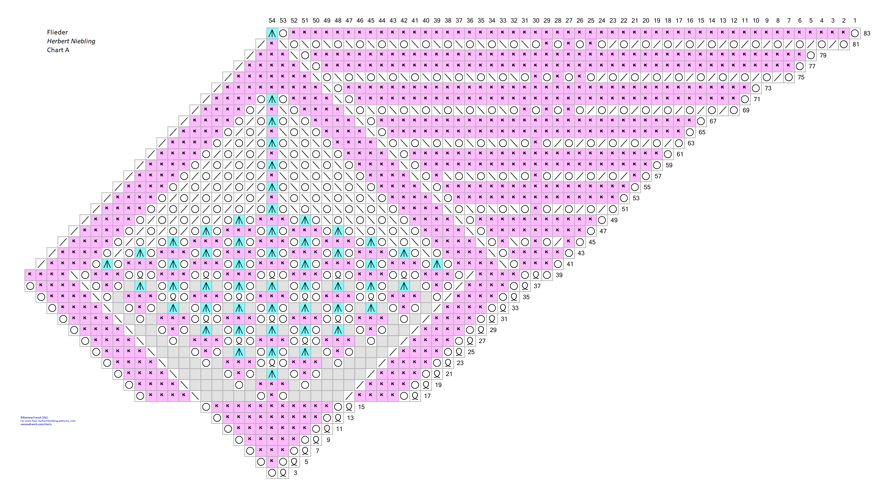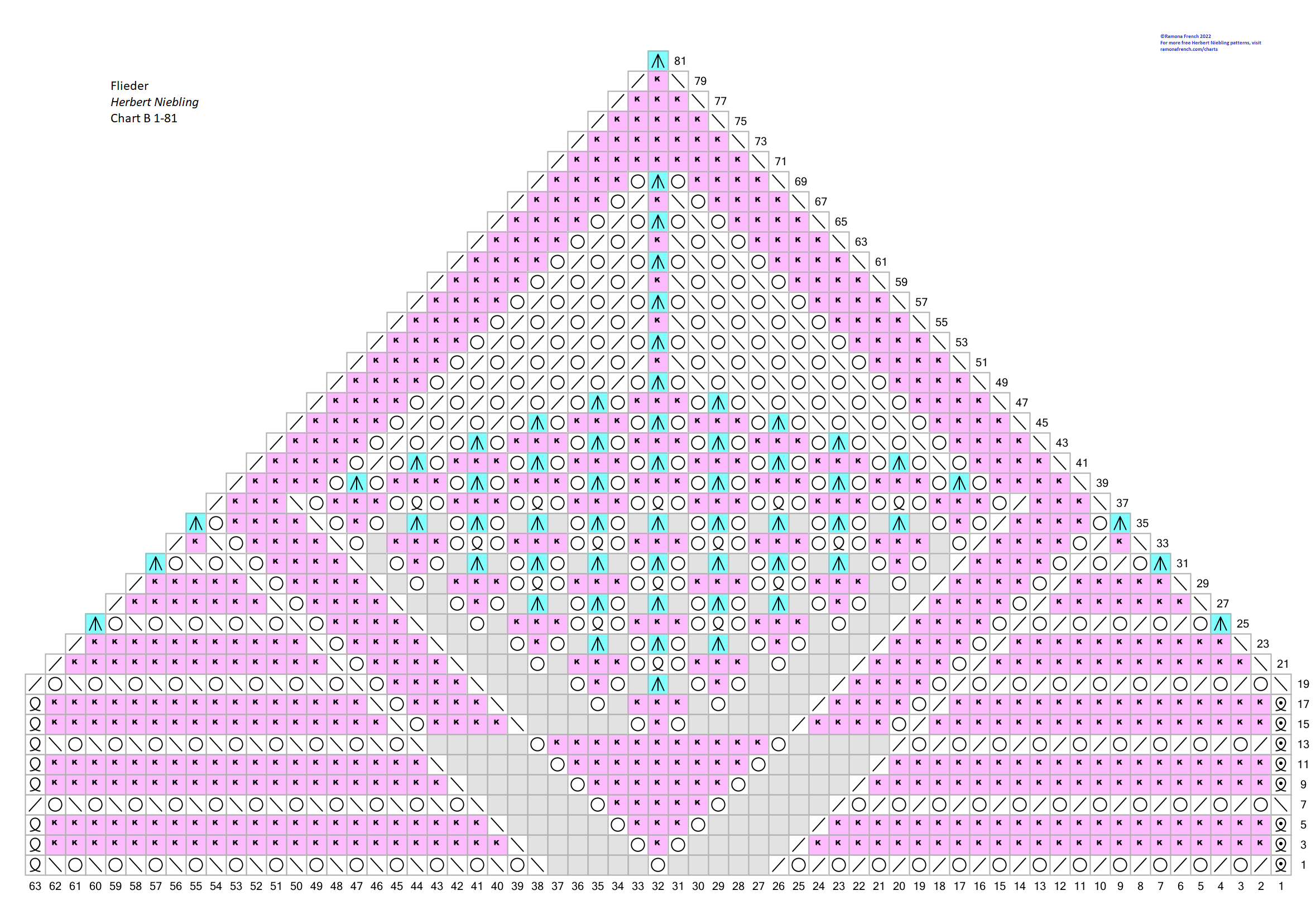 - I don't own the original pattern, but I do own my recharted version. So, please don't copy my charts and claim them as your own or publish them under your name. If you want to have your own charts, then find the original patterns and rechart them yourself!