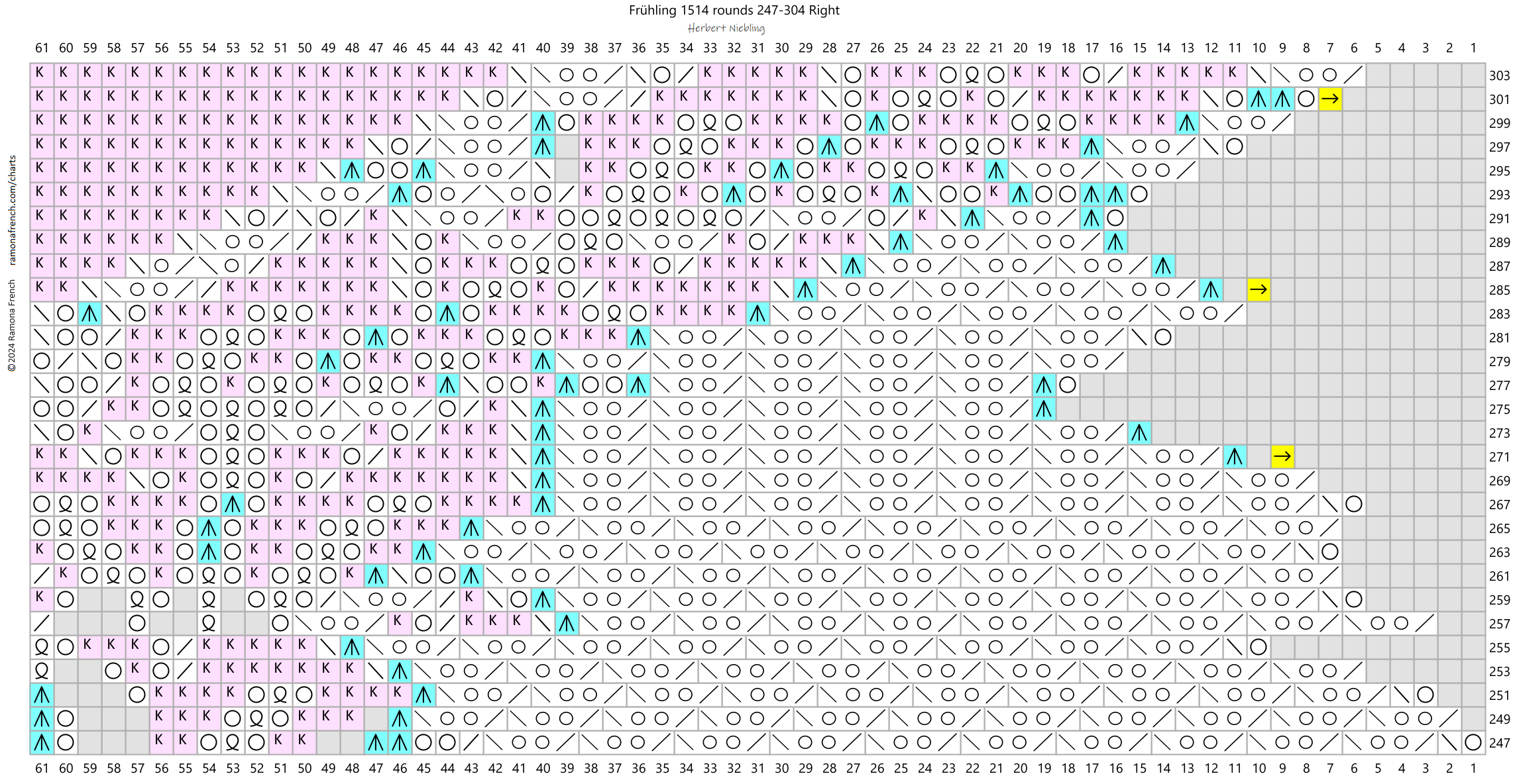 - I don't own the original pattern, but I do own my recharted version. So, please don't copy my charts and claim them as your own or publish them under your name. If you want to have your own charts, then find the original patterns and rechart them yourself!