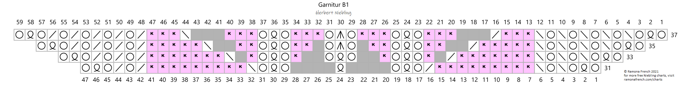 - I don't own the original pattern, but I do own my recharted version. So, please don't copy my charts and claim them as your own or publish them under your name. If you want to have your own charts, then find the original patterns and rechart them yourself!