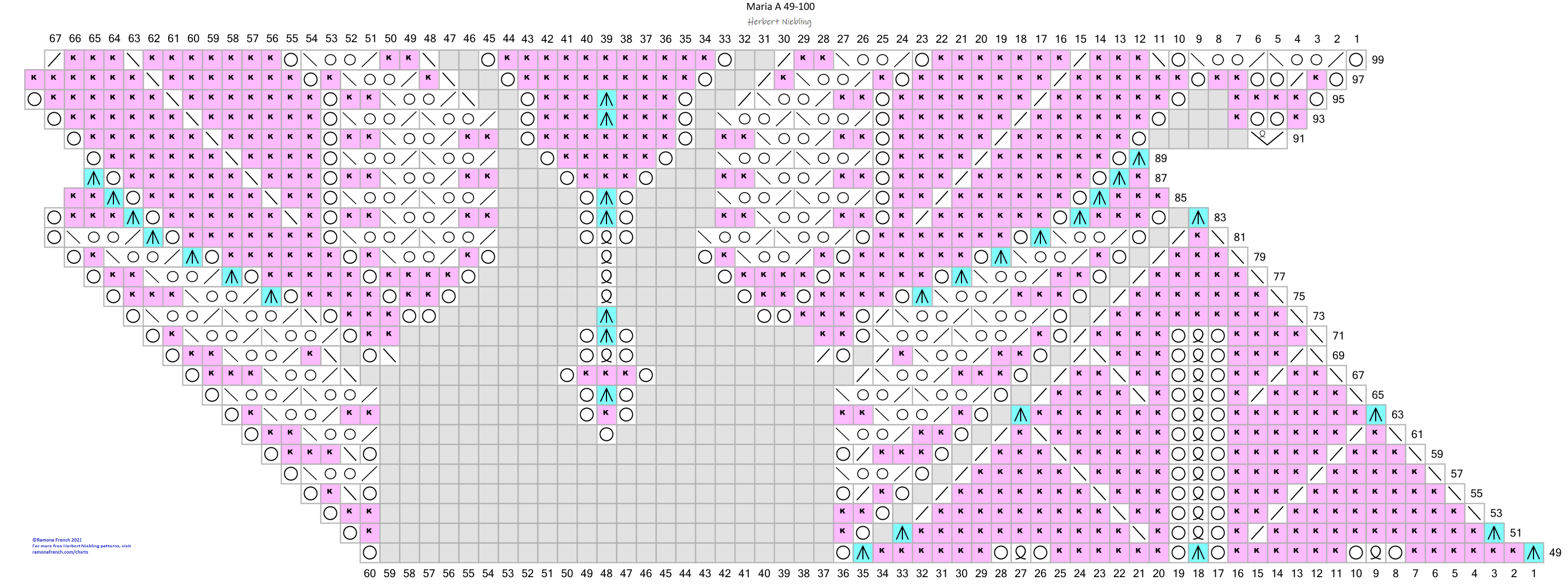 - I don't own the original pattern, but I do own my recharted version. So, please don't copy my charts and claim them as your own or publish them under your name. If you want to have your own charts, then find the original patterns and rechart them yourself!