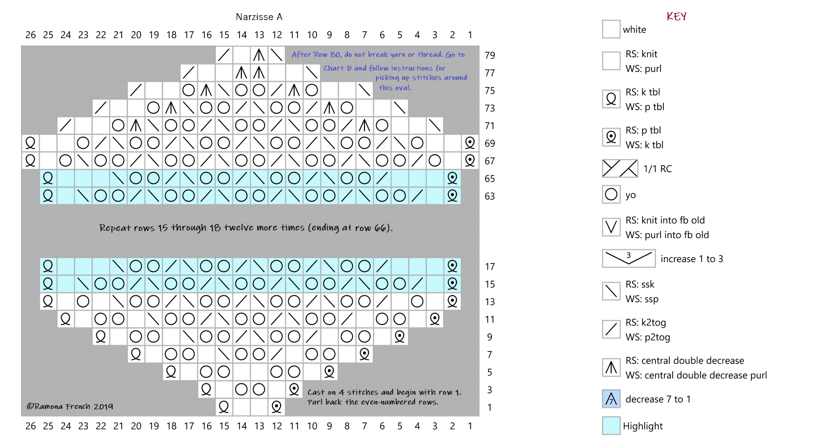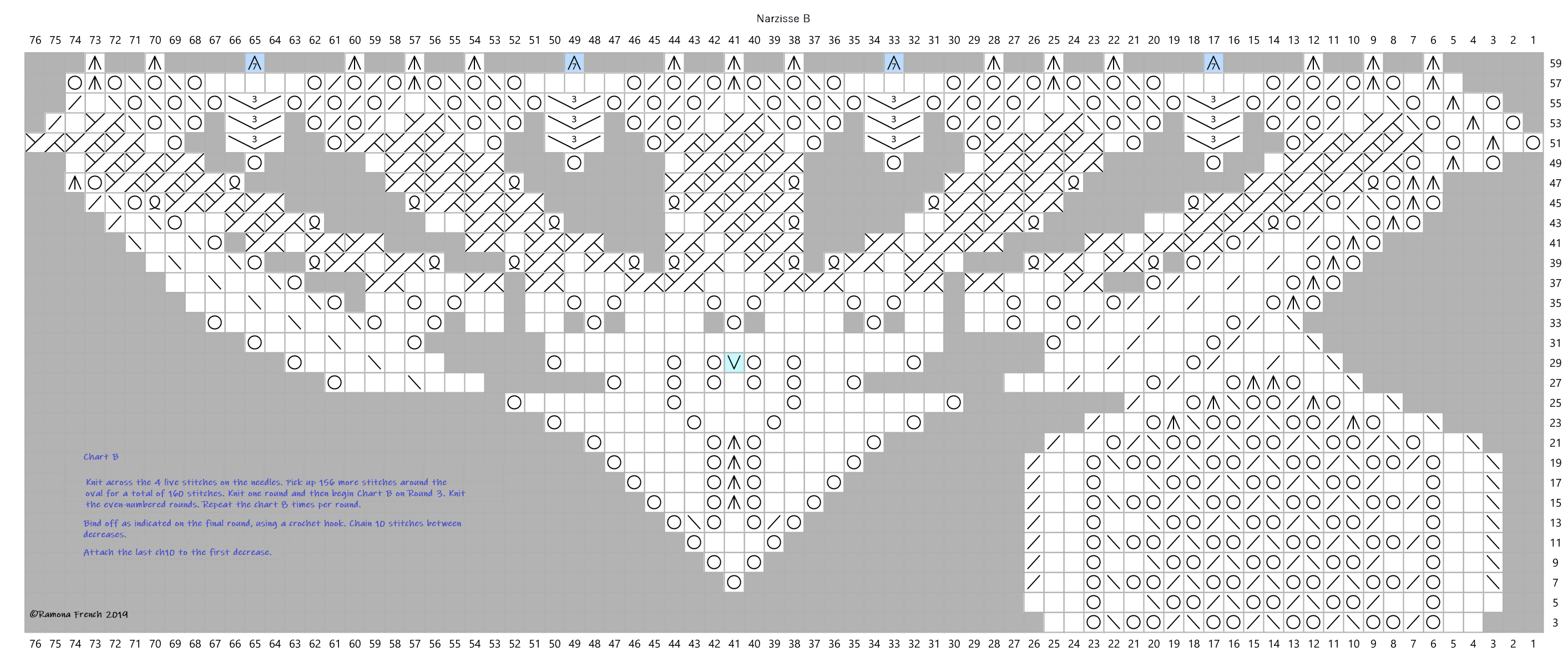 To see a larger image, right-click on each chart and choose "view image" or whatever choice your browser offers. Save the charts to your computer if you want to knit this design.