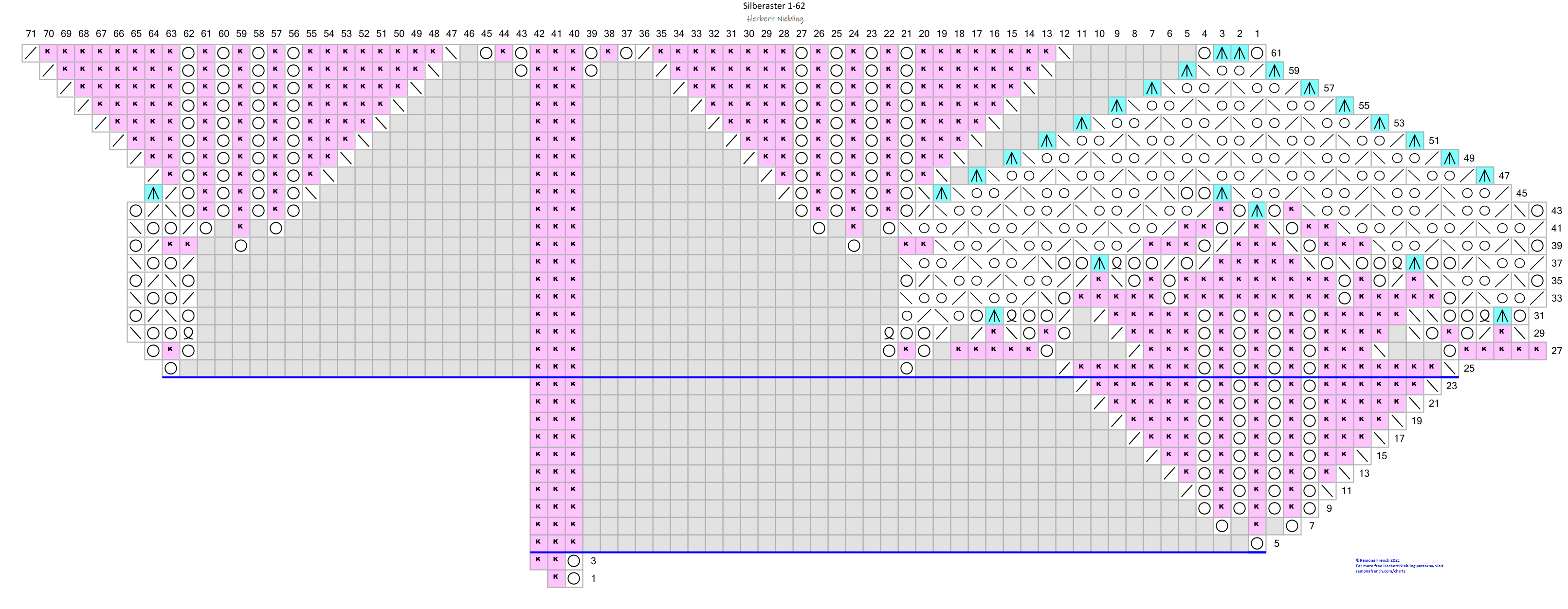 - I don't own the original pattern, but I do own my recharted version. So, please don't copy my charts and claim them as your own or publish them under your name. If you want to have your own charts, then find the original patterns and rechart them yourself!