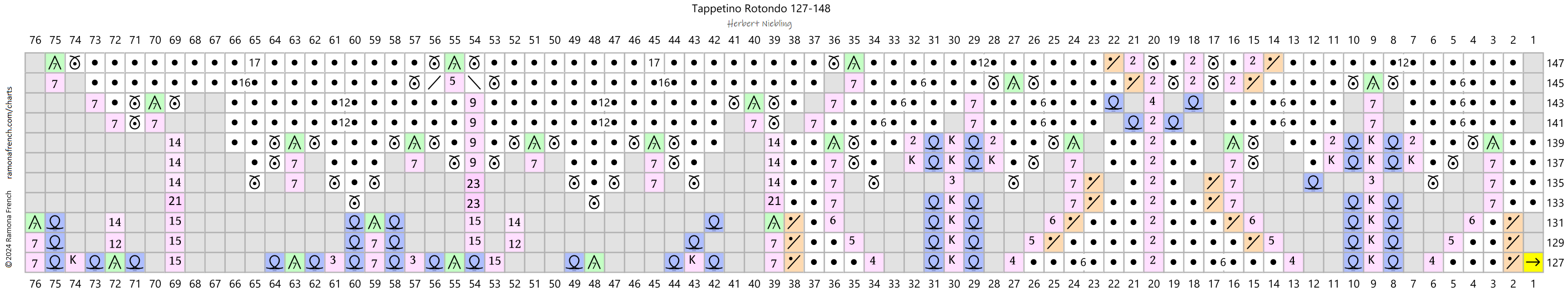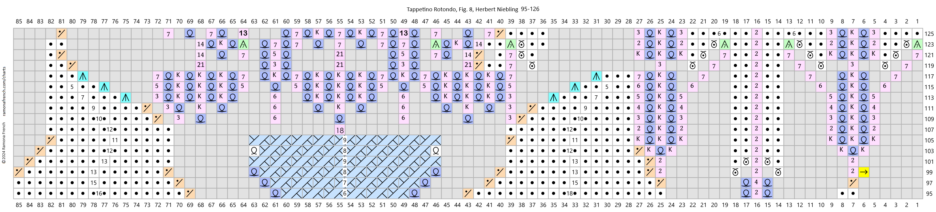 This was an interesting project to rechart as there were more than the usual number of mistakes in the original pattern. It took some concentration and some consulting with the doily underground to fix the mistakes. I think the charts are correct now, and I look forward to seeing the finished tablecloth someday!