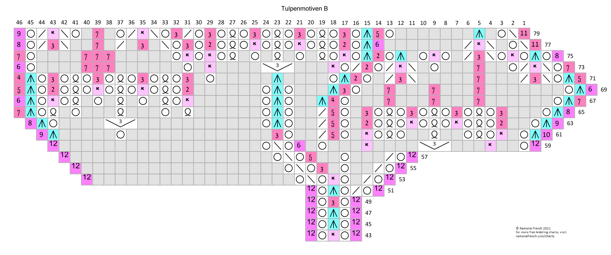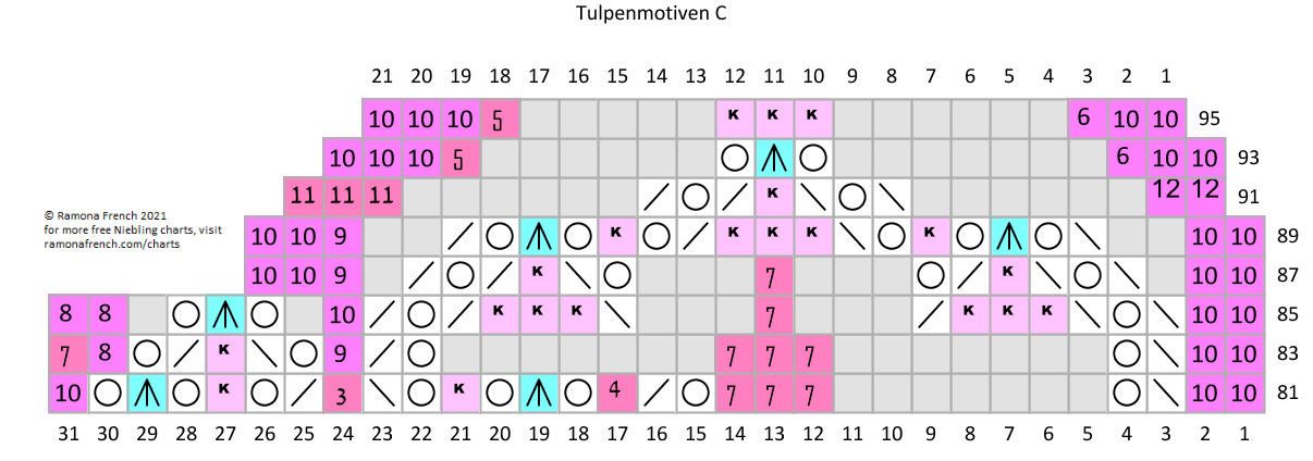 - I don't own the original pattern, but I do own my recharted version. So, please don't copy my charts and claim them as your own or publish them under your name. If you want to have your own charts, then find the original patterns and rechart them yourself!