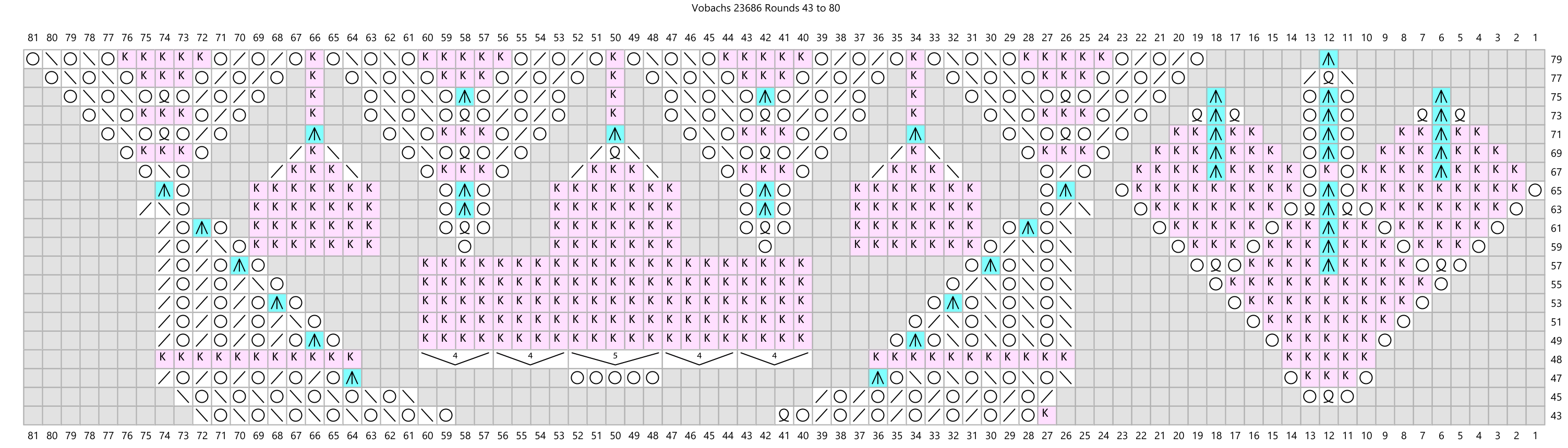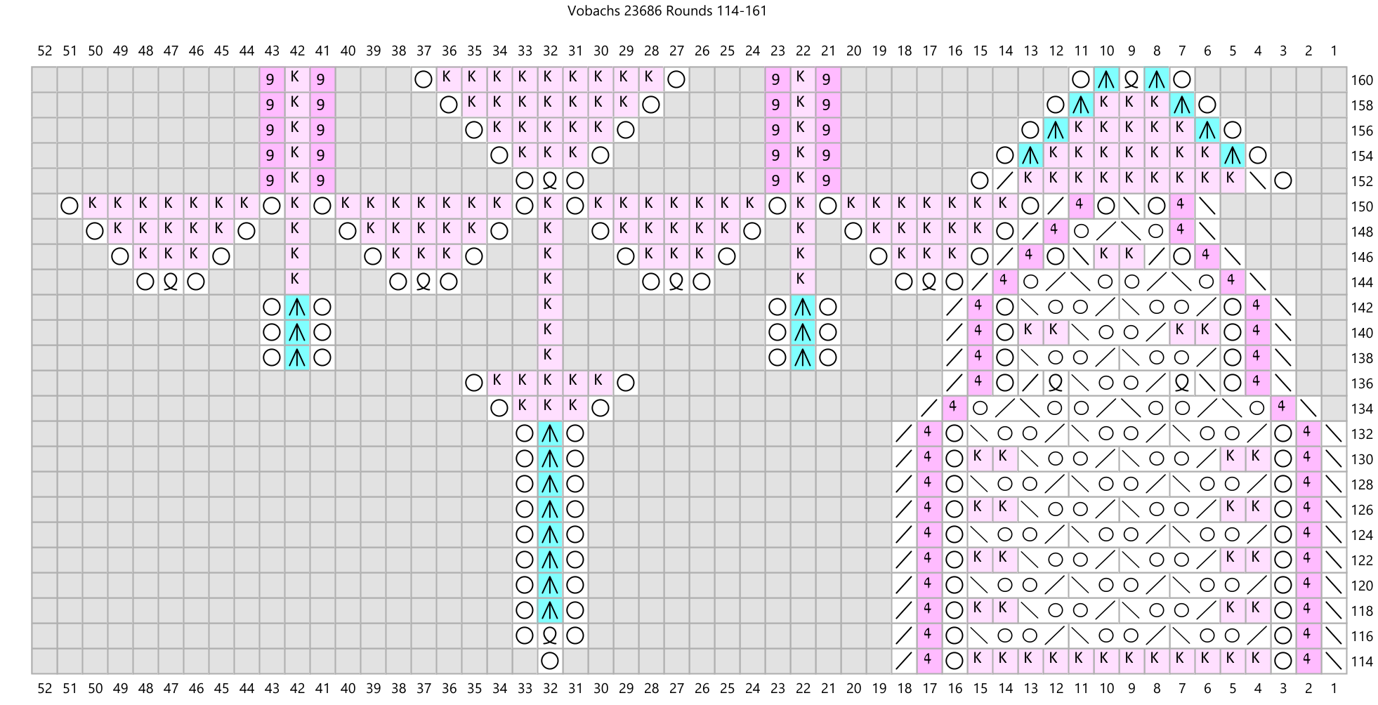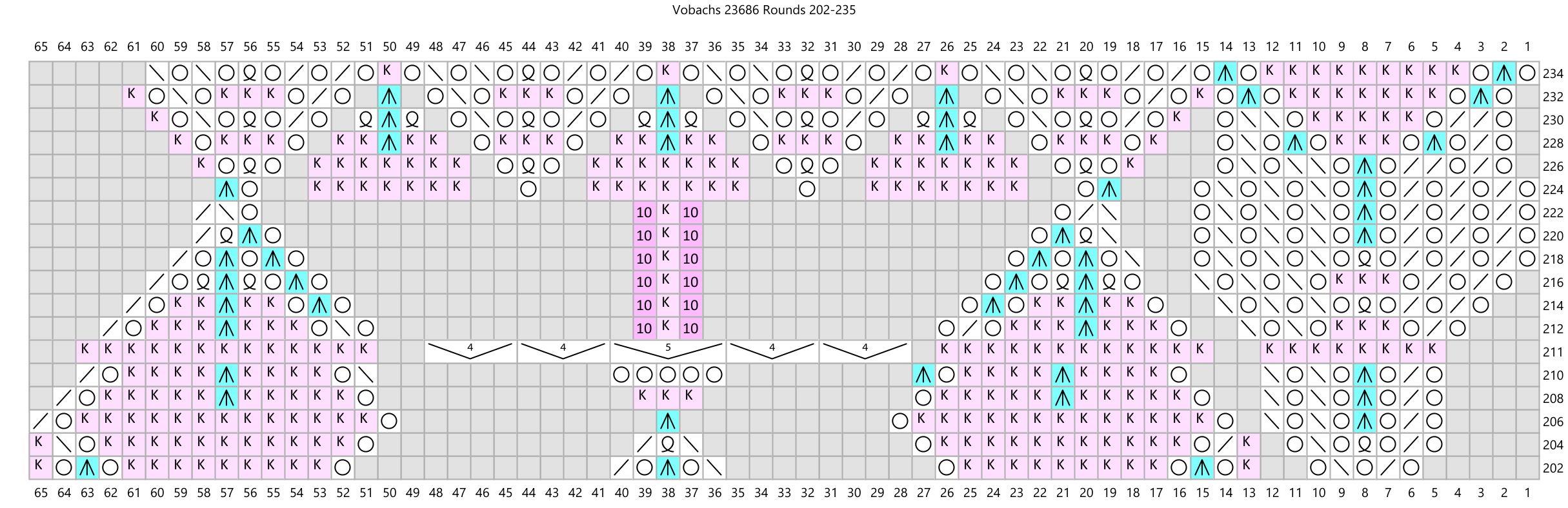Update 6/22/2024: Well, my original effort at recharting this pattern was full of errors. A wonderful Niebling expert on Ravelry knitted the pattern using my charts, comparing them to the originally published charts in Vobachs. She sent me a long list of errors! I am so glad -- I just love receiving feedback like this. It took me a while but I have fixed all the errors (that I know of) and the new charts are shown below. If you knitted this pattern before this update, I apologize for the frustration you must have felt.