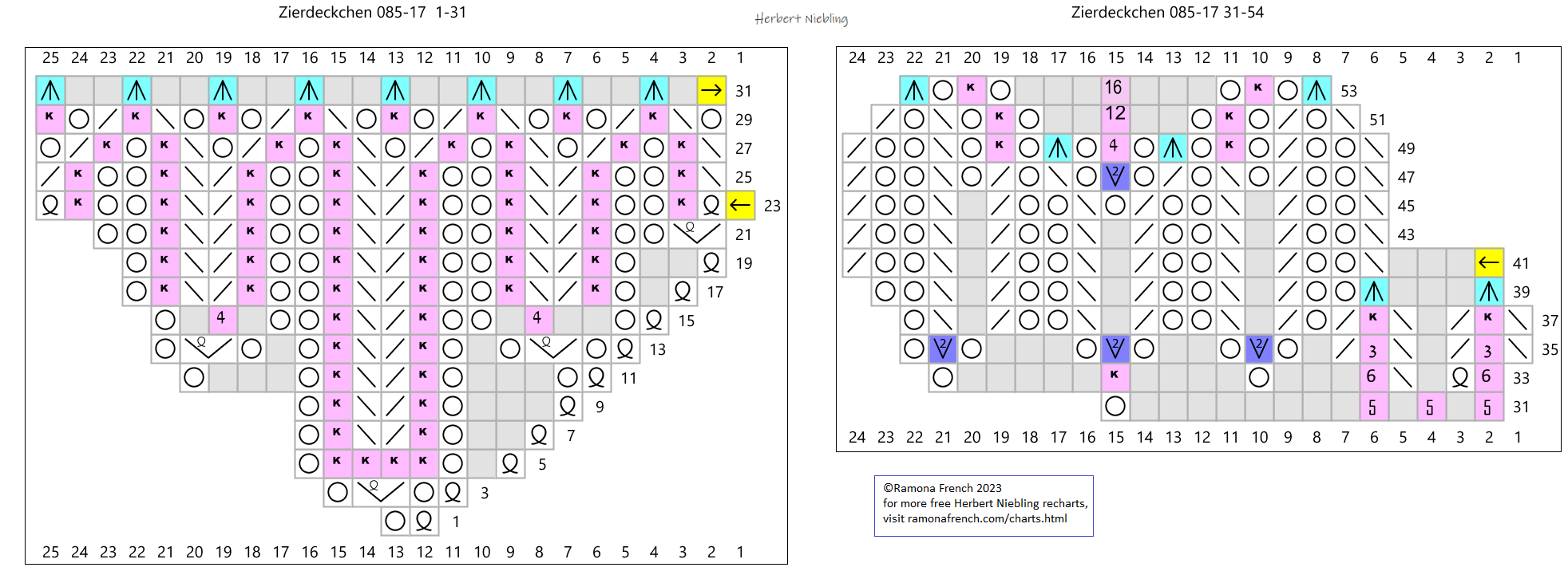 - I don't own the original pattern, but I do own my recharted version. So, please don't copy my charts and claim them as your own or publish them under your name. If you want to have your own charts, then find the original patterns and rechart them yourself!